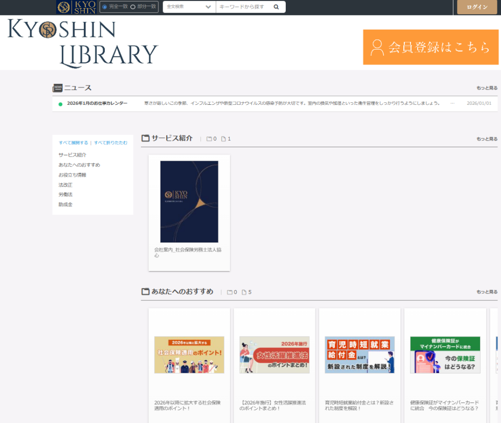 社会保険労務士法人協心は、人事労務に係るコンテンツを紹介する電子ブックサイト「Kyoshin Library」を2026年1月16日にオープンしました。